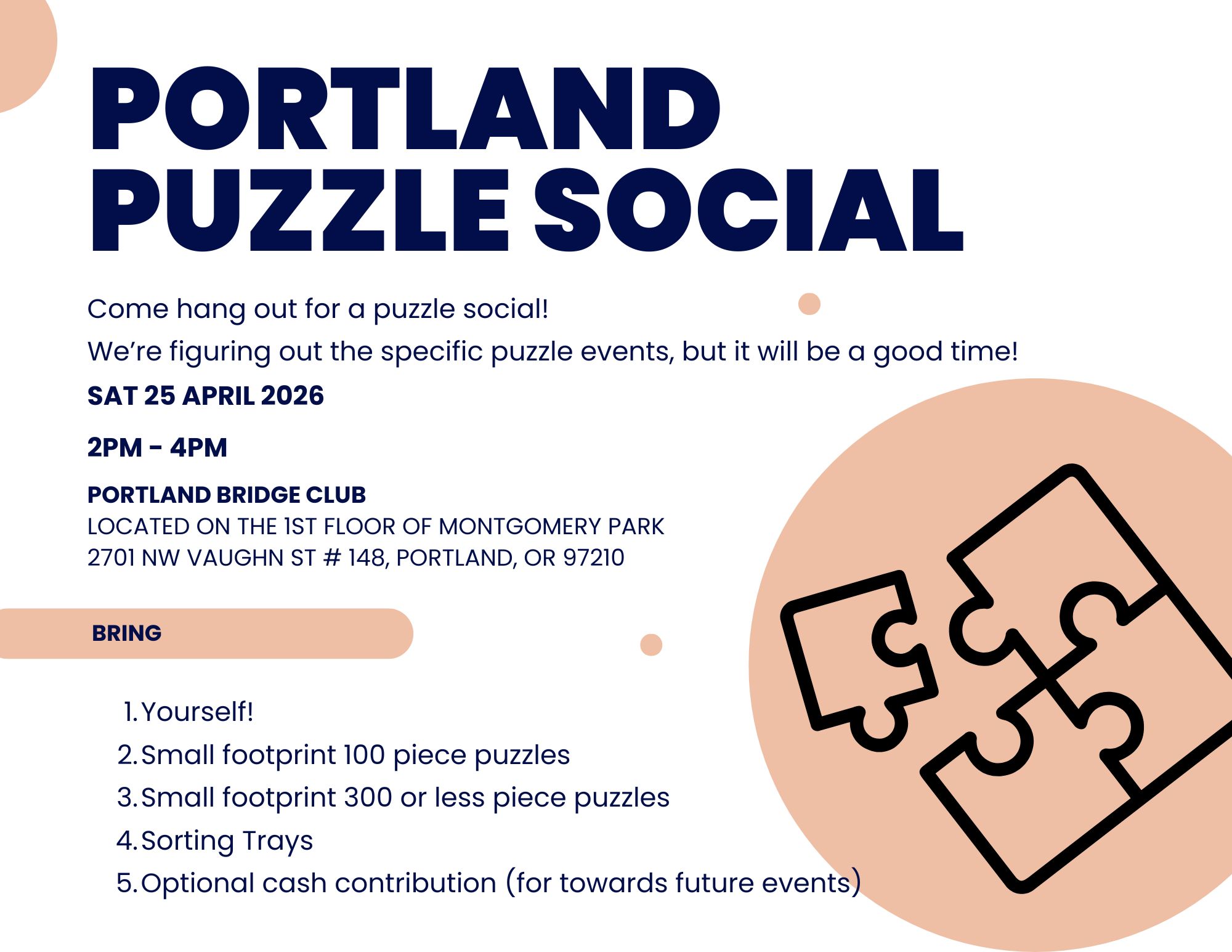 Watch for links to events around Oregon such as puzzle swaps, community events, speed puzzle competitions, and more.